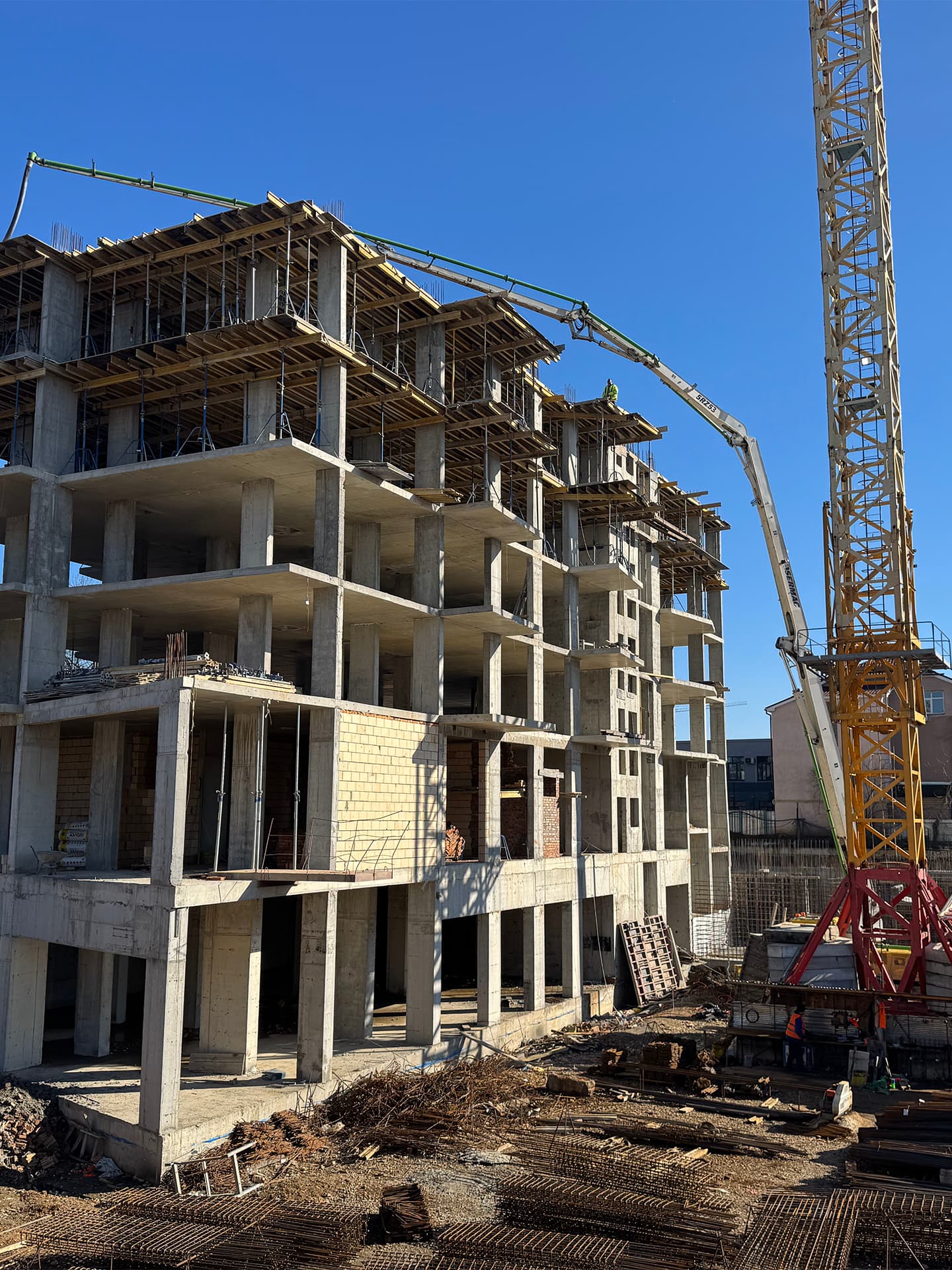 - 🔹 Бетонування плити перекриття: Завершуємо роботи над 5-м поверхом.