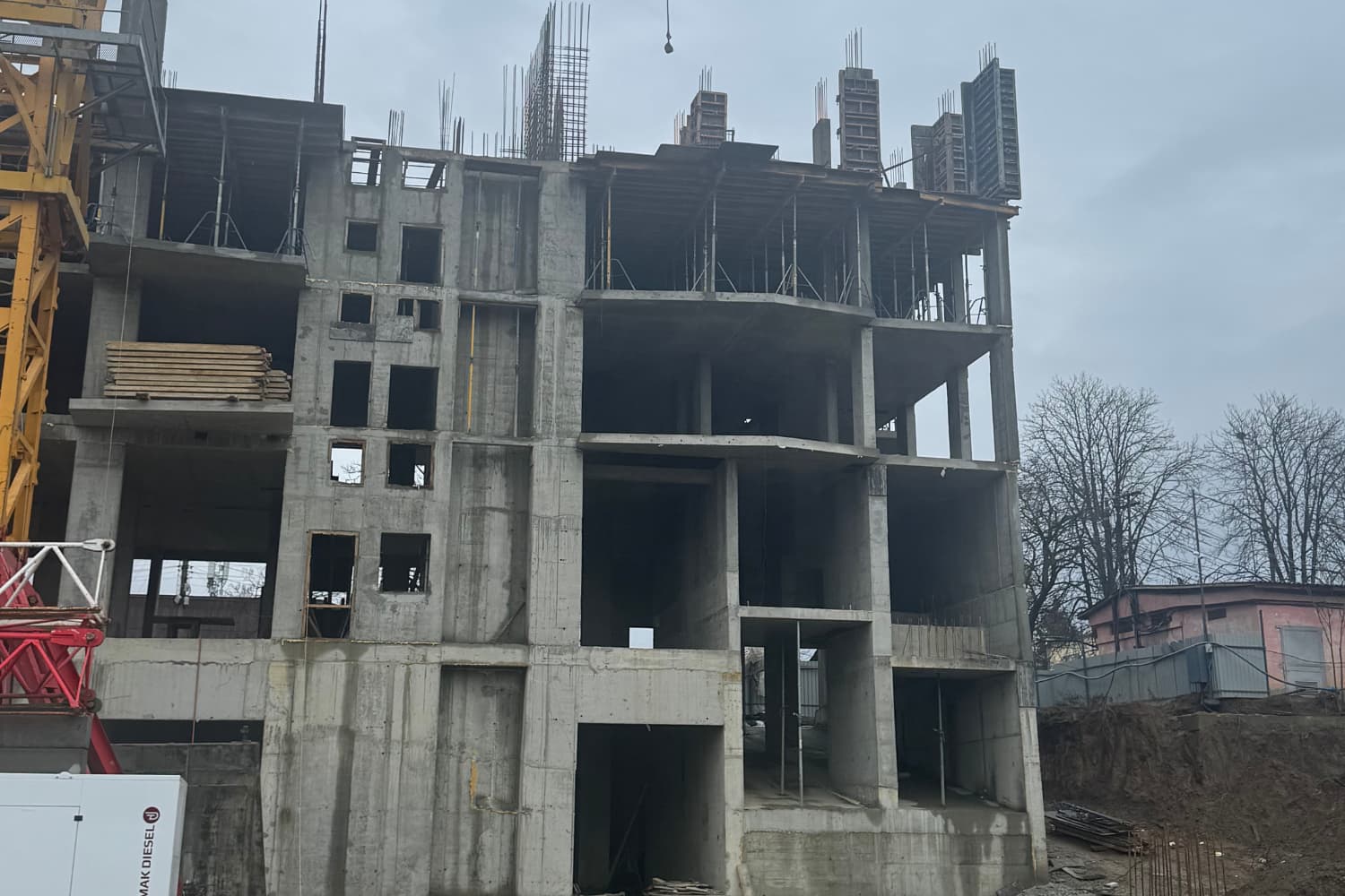Раніше будівельна команда завершила армування та бетонування вертикальних елементів та плити перекриття 3 поверху, що створило надійну основу для подальшого зведення верхніх поверхів.
