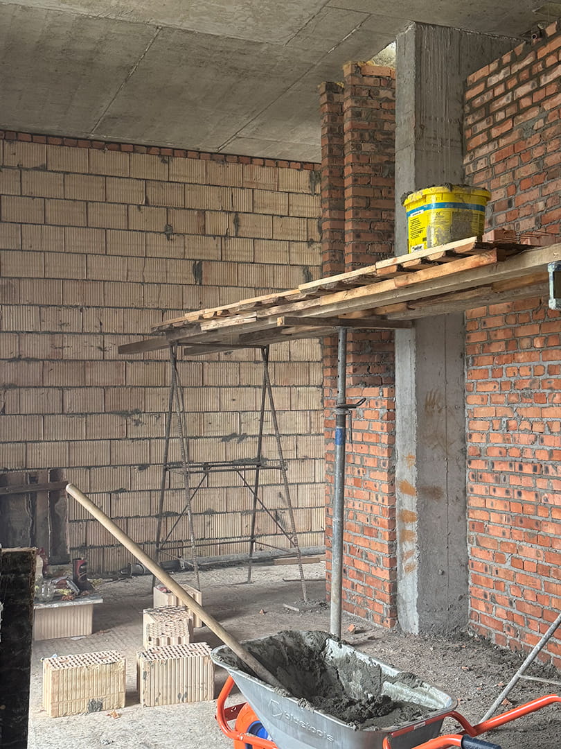 - 🔹 На 1 поверсі активно тривають мурувальні роботи — на сьогодні виконано 50% обсягу.