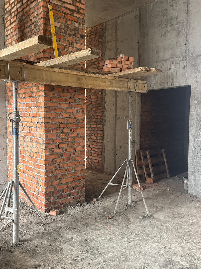 Поточні темпи робіт забезпечують безперервний цикл зведення об’єкта. Застосування методу паралельного будівництва — одночасного виконання монолітних робіт на верхніх відмітках та мурування стінових заповнень на нижніх ярусах — дозволяє оптимізувати загальний термін реалізації проєкту та забезпечити технологічну цілісність конструкцій.